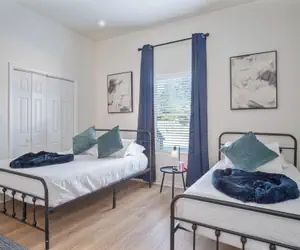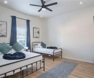 2 Twin Beds, 2 Queen Beds, 1 Twin Bunk Bed and 1 Twin Futon