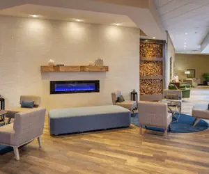 When you stay at Hilton Durham near Duke University in Durham, you'll be in the business district, a 4-minute drive from Duke University Hospital and 6 minutes from Duke University. This hotel is 10.5 mi (16.8 km) from University of North Carolina and 10.6 mi (17 km) from Research Triangle Park.