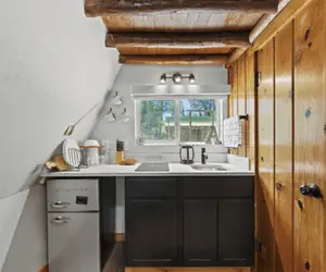 Inside, you’ll find warm interiors, plush bedding, and fully equipped kitchenettes designed to help you unwind and feel at home. Set in a peaceful location, each cabin invites you to slow down and enjoy your surroundings. Whether you’re sipping coffee beside the stream or relaxing after a day of adventure, these cabins are meant for rest, connection, and lasting memories.