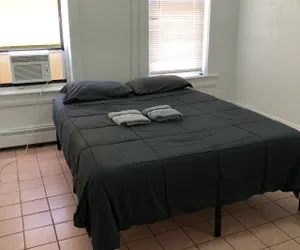 • Welcome to this private 600 square feet (55 m2) apartment with 2 bedrooms, kitchen, and one full bathroom. Please note this apartment does not have a living room. Safe and quiet area. Buses to NYC Manhattan right outside — 15 mins to Midtown Times Square NYC. Shopping and dining nearby within walking distance. This is a private apartment located in an older building with other apartments. If you want a simple and affordable place very close to New York City, this is a good fit. No parties, events, or smoking -- this is strictly enforced.
