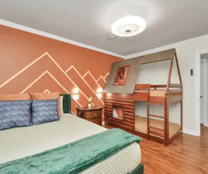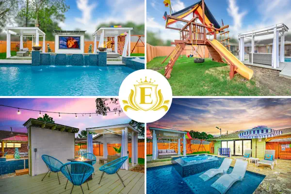 Welcome to your family’s dream getaway in Houston! This 5-bedroom retreat was designed for togetherness, relaxation, and fun. Picture your kids splashing in the pool, grandparents relaxing by the firepit, and everyone gathering for an outdoor movie under the stars.