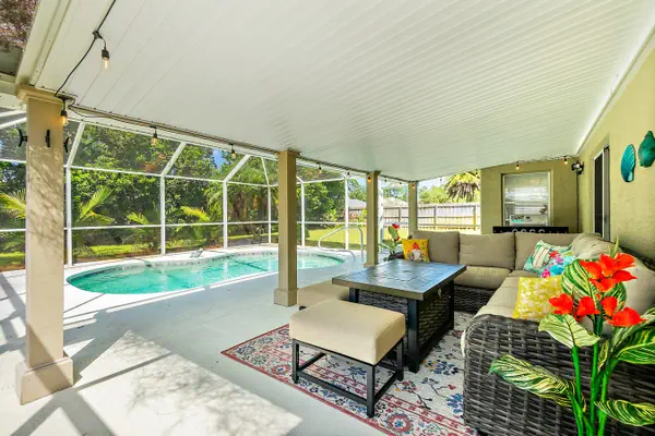 Beyond the pool, the large backyard gives you space to play, walk the dog, or simply enjoy the Florida sun. Partially fenced with tropical landscaping and palm trees for added privacy.