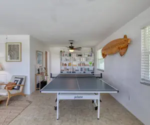 Welcome to Surf Break Getaway your beachside escape just 1 block from the sand in Daytona Beach! This 3BR/2BA home offers a game room with ping pong, a spacious Florida room, and a fully fenced backyard perfect for your pup (1 dog max with pet fee paid). Relax in bright coastal living spaces, enjoy grilling, and stroll to the beach in minutes. Salty Surf Retreat is your perfect home base in Daytona Beach Shores. Book your stay today and experience the perfect mix of Sit. Stay. Play. Vacay.