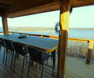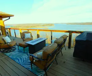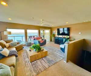 The home features a full gourmet kitchen with everything you need to cook a great meal. 2 bedrooms have king sized beds, and the other bedroom has 2 queen beds. Tons of seating on the expansive 2 story deck overlooking 180 degree views of the lake. There are lots of board games for those rainy days. The kitchen has a keurig coffee station and a water cooler for those who want spring water on demand. The 2 car garage is available to use.
