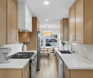 The home is fully equipped for short or extended stays, including in-unit washer and dryer and a dishwasher for easy cleanup.