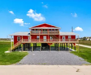 Three beach units, one booking. You get the whole triplex on Bolivar/Crystal Beach: 6BR/3BA for up to 20. Each unit has its own kitchen, living room, and Wi-Fi (~25 Mbps). Beds: queen + bunk in every unit, plus an extra bunk in one. A short walk to the sand, and near the Port Bolivar ferry to Galveston.