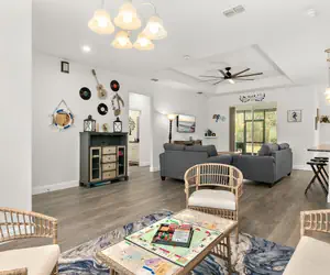 This single-story, 3-bedroom home is designed to make family travel easier. The open living space keeps everyone connected during the day, while the split-bedroom layout allows for quieter evenings and better rest.