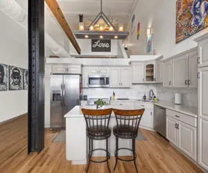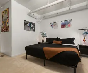 At 1,740 sq ft, this spacious 2-bedroom, 2-bath loft from Elevated Furnished Rentals blends modern comfort, artistic inspiration, and unbeatable walkability, making it perfect for business travelers, convention guests, remote workers, creatives, and extended stays.