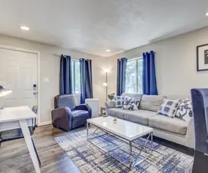 This is a quaint, fully-stocked one-bedroom unit from Elevated Furnished Rentals featuring a large kitchen, onsite laundry and parking, and more.