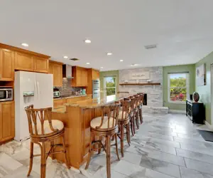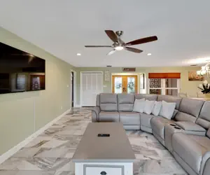 Escape to this beautifully updated home, offering breathtaking views of the pool and serene lake, ideal for families or groups looking for a peaceful retreat. The open-concept design boasts a sleek, modern kitchen with a spacious island that seats eight, providing a perfect spot for dining or gathering while enjoying the picturesque scenery. This home ensures both relaxation and ease of access, making it an excellent choice for your next getaway.