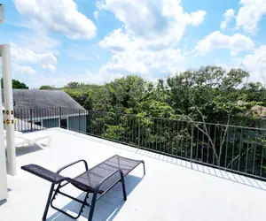 The fourth floor is for those who want to tan without having to walk to the beach! Enjoy the privacy and quiet of the neighborhood while getting your tan on. We have tanning chairs up there for your convenience - enjoy this space while catching stunning views of the neighborhood and the beach just beyond the trees. In the winter you can see the beachfront!