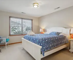 On the third floor, you'll find another perfect reading nook area to your left up the stairs, this is perfectly situated between the two bedrooms. To the right of the stairs you'll enter the master suite. This includes a queen bed, large and spacious room, desk, sitting chair, large walk-in closet, and a shared bathroom with luxury features.