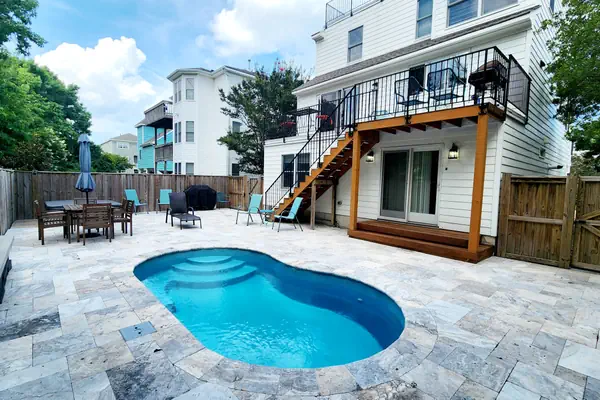 When you walk into the front door of the spacious home, you'll find the stairs leading up to the second floor, the garage on your right with storage and beach essentials and access to the patio. Down the hall, past a large closet for storage, you'll walk directly into a queen bed bedroom with a large amount of storage. The old school design is classed up in this house, you will feel so comfortable here! Next, you'll pass the beautiful walk-in shower and bathroom to get to the private ensuite with a small kitchenette for those who want a space to prepare a snack without disturbing the remainder of the home. This room has a twin bed with another trundle option in here. The third bedroom features two twin bunk beds. You can access the pool from the private ensuite, but keep in mind there is a security feature to alarm the house if someone opens this door. We have this in place so that you can make sure you are aware if kids walk onto the patio since the pool is not gated.
