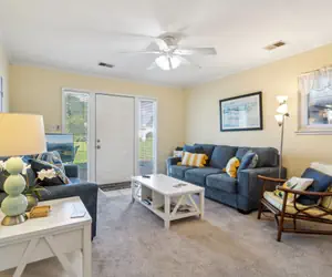 Just a brief stroll from Virginia Beach Oceanfront access, this delightful retreat offers not only proximity to the beach but also exclusive access to a refreshing pool! The two bedrooms provide a restful haven, with a king-sized bed in the master and a second bedroom accommodating four with two double beds. Each bedroom boasts its own bathroom, TV, and ceiling fan, ensuring personalized comfort.