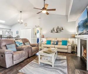 The living room is outfitted with enough cozy seating to meet your needs and wants for your group - snuggle in for a movie, break out a board game, or just casually sit around for a nap or catch up with your family. The living space is where the memories are really made! Want to eat while in the middle of watching a game or movie? No worries, the dining area is nestled in the living room comfortably, so you won't miss a thing!