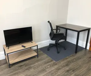 • Work desk in the living room for remote workers.