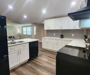 The home includes washer and dryer hookups and is conveniently located near laundry facilities. Additional amenities include high-speed WiFi, smart TVs with streaming access, and ample parking space.