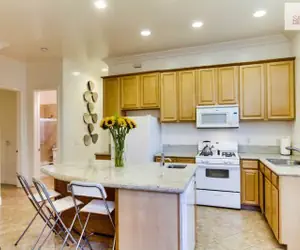 - Full kitchen with center island & bar sink