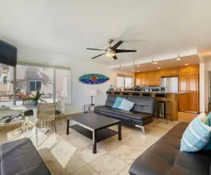 Mission Beach Condos located on the ground floor can sleep up to 18. Great location - cross street YORK - near all food, coffee, shopping. 180 degree views with a huge patio, BBQ, bike parking. Two beach houses loaded with features including swing arm mounted high def PLASMA TVs, DVD, IHome sound system, under counter lighting, pendant lighting, Two GE Profile kitchens, built-in Washer & Dryers, and so much more!
