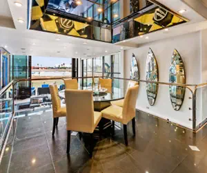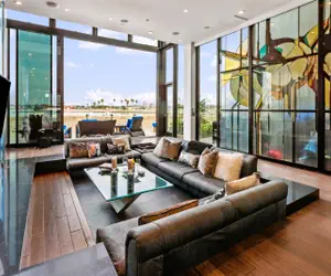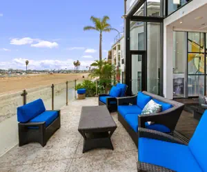 • Located on the breathtaking Mission Bay boardwalk, this state of the art property is dripped in luxury with a stained glass wall, high end massage chairs, a Lutron electronic lighting system, multiple zone sound systems in each room including iPod hookups, black granite floors, and wet bars throughout. Not to mention the rooftop jacuzzi with panoramic views of the bay. Note: due to pandemic jacuzzi is not available.