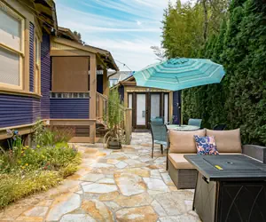 For the best rates and customer care and to see over 800 5-star reviews, discover the Patio Suite at the Portland Eco House. Overlooking a quiet, secluded patio, this eco-friendly retreat is just steps from the vibrant Alberta Arts District, Killingsworth St, and Williams and Mississippi Avenues, with their breweries, bars, shops, food cart pods, and vegan eateries.