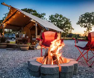 Experience the beauty of Missouri in the warmer months at Roaring River Hills Campground and Cabins, just three miles from Roaring River State Park. Wake up to golden sunrises, explore lush trails, and spend lazy afternoons fishing or wading in cool streams. As evening falls, gather around the firepit for starlit storytelling and roasted s’mores. Whether you’re here for adventure or relaxation, our glamping tents provide the perfect outdoor retreat.