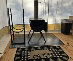 Tucked away in a more secluded area of the property, the “Family” Glamping Tent #4 is one of our 5 larger glamping units that offer a peaceful off-grid retreat surrounded by trees, and the occasional visit from deer at sunrise. While there’s no power in the tent itself, you’ll find comfort in the simplicity - like a cozy queen bed, bunk beds for the kids, and a wood stove for warmth on cooler nights.