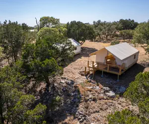 As the weather cools down, immerse yourself in a cozy escape at Twin Falls Ranch, located in the heart of Texas Hill Country. Enjoy fresh air, vibrant foliage, and nearby parks, wineries, boutiques, farmers market, for the perfect glamping getaway.