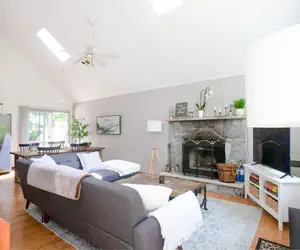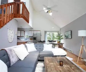 Sun-drenched, family-friendly home that is nice, clean and close to everything with many community amenities! This 3 bed 2 bath home is a small yet sophisticated chalet with plenty of yard space for fun and family time. Offers a well-stocked kitchen, vaulted ceilings, firepit, fireplace, big backyard, games, & dog friendly w/fee (Max 1; no cats!) Room AC Only! Linens not included and available to rent. Near the the outdoor pool and only 5 min drive to the lake! Our all-purpose community center is the focal point of our amenities. There is a Ring Door bell with a camera. Permit # 210158 As well as other external surveillance. This entire chalet is perfect for your family/group! Just text Debbie if you have any questions!