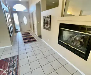 Relax in the open-concept living area and stream your favorite shows on the 65" Roku Smart TV. Enjoy meals together at the large dining table that comfortably seats eight. With central AC and heating, you'll be comfortable year-round.
