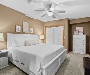 Immerse yourself in the tranquil ambiance of a seaside escape in the primary bedroom. With calming colors throughout, driftwood accents, and sea-inspired decor, you'll feel like you're waking up on the shores of a distant paradise. The primary bedroom has a plush, 12" memory foam mattress, smart TV, room darkening curtains for a peaceful nights sleep, a sitting area to take in the southern sun exposure, an enormous walk-in closet with tons of storage and more. The primary bathroom is perfect offering a jacuzzi tub, stand-up rain shower and provided toiletries.