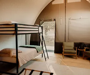 Your private tent blends the charm of camping with the ease of a cozy hideaway. Inside, you’ll find thoughtful touches that make your stay relaxing and convenient: