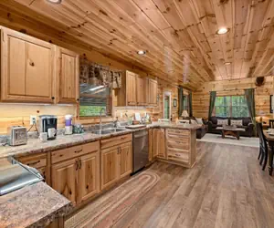 Nicely furnished, Bear Pause features a fully equipped kitchen, jetted tub, and wood burning fireplace all designed with your convenience and comfort in mind.