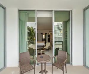 Step out onto your oversized terrace, surrounded by lush palm trees for added privacy. The terrace provides a relaxing view of the resort's main pools and features a cozy seating area with chairs and a small table, ideal for enjoying your morning coffee. Guests also enjoy complimentary daily access to the Lapis Spa for two people, as well as 24-hour check-in via the hotel’s front desk.
