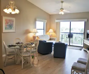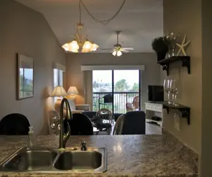 The design of the condo is an open-plan with sliding glass doors to the balcony. Whether you're planning on doing some home cooking or eating out every meal, our kitchen has everything you should need to prepare a meal. Full-size appliances and all the cookware, utensils, and dishes enable you to do as much or as little cooking as you like. The breakfast bar has 3 stools for eating your meals. The condo has a microwave, coffee maker, blender, icemaker, and dishwasher.
