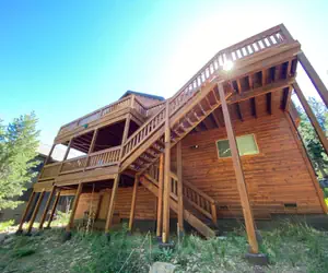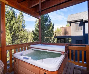 Here, you can unwind and take in the fresh mountain air or enjoy a soothing soak in the covered hot tub situated on the lower deck.
