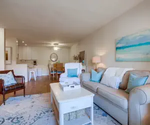 This beautiful 2 Bed/ 2 Bath condo has updated comfortable furnishings to make it an ideal home for your Solana Beach vacation! The sunlight comes through every room getting the afternoon sun and facing the sunsets. This beach themed, bright condo sleeps 6 and is equipped with a King + Twin in the Main bedroom, Queen + Twin Trundle in the second bedroom, and a Queen size sofa bed in the living room.