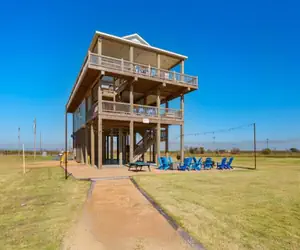 Hello Beautiful!! That’s what you’ll say when you walk in to this high end, spacious home that is perfect for large families and groups of friends wanting to get together and enjoy the beautiful beaches and warm sun of Crystal Beach! Offering a bright interior, plush furnishings, and two spacious decks, everyone will be able to spread out and experience their own piece of paradise. After a beach day, come back to cook amazing meals in the grand, full kitchen that offers all the amenities needed to make any recipe with ease. There is also a kitchen (with ice machine) on the furnished mezzanine level where everyone can gather comfortably for a meal or cocktails at sunset. This five bedroom gulf-front beach house offers you the chance to experience the Texas coast while staying in the lap of luxury. With space for as many as 17 guests, and boasting plenty of modern amenities, you may never want to leave! Kick the sand off your feet as you enjoy your way to your home away from home. An open and spacious layout allows for all of your guests to spread out in the sprawling interior. The living room has high vaulted ceilings, towering picture windows, and an unobstructed view of gently crashing waves. Stepping out of the living room and onto the ample upper, furnished deck, you'll be greeted by all-encompassing water views that span the coast. Grill up a tasty BBQ dish on the large grill as you watch the stars come out over the Gulf Coast. This luxurious home has everything you're looking for to enjoy a care-free, stress-free stay. When you're ready to retire, five bedrooms - each with its own unique layout, sleeping options and tempurpedic mattresses- await. With plenty of room for an extended family or large travel group, this exquisite, beachfront home is sure to please the most discerning guests in your party. Offering jaw-dropping, panoramic views, contemporary touches, and plenty of space for everyone, this home is a beach dream come true.