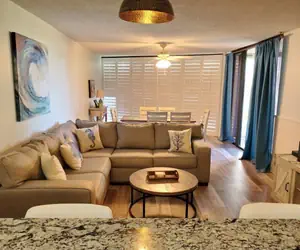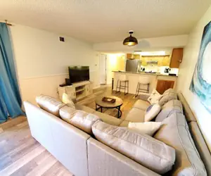 Flat screen TVs are featured in both bedrooms and the living room and include Xfinity’s Preferred Package of 200 channels, plus high-speed internet. A new washer and dryer is included in the unit adjacent to the second full bath featuring a shower and granite countertops.
