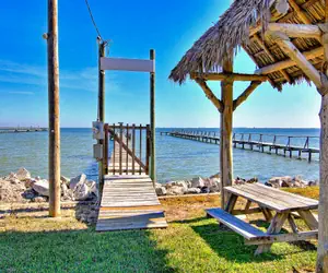 Located across from Aransas Bay, this recently remodeled 1BR cottage features a sunning deck, a shaded picnic area by the water, and a private pier. You’ll also enjoy a private backyard and patio with a charcoal grill.