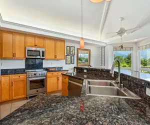 This bright, spacious three-bedroom, three-bathroom townhome is located at Villas of Kamalii, in the prestigious resort community of Princevile. Perched on the highest part of world-famous Makai Golf Course, enjoy stunning mountain and waterfall views from your private balcony. This condo is walking distance to Makai clubhouse, Old Club Med trail, picturesque Nourish café, Russian fort, and Princeville’s beautiful sunset lookout. Hideaways beach, Sealodge beach, and the public beach at Hotel One resort are all within a mile. Enjoy the shops and restaurants at Princeville Center also, just a short two miles away.