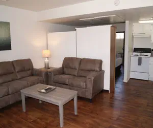 Furnishings in photo may vary slightly from actual unit. Suites are ran with a boiler/chiller system which means they either provide heat or cooling- they are not equipped to provide both at the same time. Seasonality may bring weather that fluxgates day to day. During these times we recommend taking the extra steps to keep your suite cool/warm as possible.
