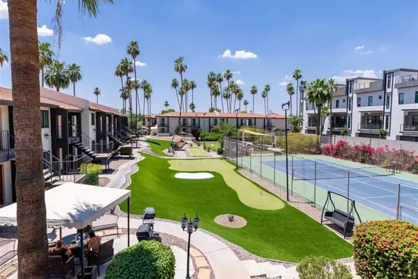 Our community features a gorgeous, large outdoor community space with a fireplace, abundant seating, bocce ball and other outdoor lawn games; 3 grilling stations, heated pool and hot tub, additional seating areas and misters for those warm Arizona days.