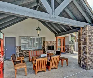 The great room offers a fully stocked kitchen, dining table, Queen pull out sofa and Smart TV with Cable and sound-bar.