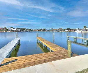 Welcome to Dock Holiday! Private dock usage comes with this second floor, two bedroom, two bath coastal condo. Tie the boat up after a long day of fishing, without having to worry about pulling the boat out of the water. Teach the kiddos to fish from the dock and watch their faces light up when they reel in that first catch. You also get access to the beautiful community pool and the tennis courts. Located in the heart of Rockport, this lovely Bayhouse condo boasts cool coastal decor and has fantastic views of Canoe Lake from the balcony. This is a great spot for morning coffee or afternoon cocktails. Inside you'll find an open and inviting living space filled with comfortable seating and great views. The dining table seats six and there are two barstools for extra seating. The fully stocked kitchen has everything you need to whip up a meal or a pitcher of margaritas. In the master bedroom is a king bed, ensuite bathroom, and wonderful views of Little Bay. The second bedroom has a queen bed and a twin bed. The second bathroom is across the hall. One sofa doubles as a queen sleeper giving the unit a max occupancy of seven. There are tons of games and puzzles for the kiddos and the young at heart to play, three televisions, and three DVD players. There is also a small, portable, propane grill for your convenience. Come enjoy a Dock Holiday and make new memories that will last a lifetime! Streaming TV only.