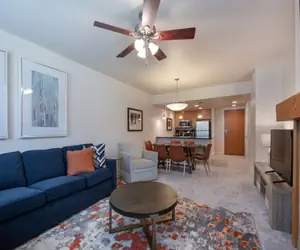 Simple and comfortable two bedroom, two bath condominium looking into the amenity courtyard of Fraser Crossing.