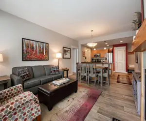 There is a king bed in the master bedroom and one set of bunkbeds in the second bedroom with a sofa sleeper in the living area.Everything you need for a cozy, convenient mountain getaway is right at your fingertips with these slope side accommodation.