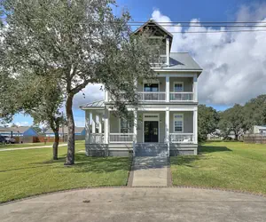 The Barefoot Pelican is a gorgeous 3 story home with 4 bedrooms, 3.5 bathrooms. Wraparound porches, balconies, and double glass French doors are just a few of the many charms this coastal home has to offer. The first floor features an open concept kitchen, dining, and living area with 10 foot ceilings, bamboo flooring, granite countertops, and professional stainless steel appliances in the fully stocked kitchen. On the second floor you will find the master bedroom with a king bed and an amazing attached bath featuring a large walk-in slate shower and real antler hardware. Across the hall is a second bedroom with a queen bed and attached bath. Down the hall is the third bedroom with two twin bunkbeds (4 beds) for the kiddos to enjoy and a third bathroom. On the third floor is a bonus room with a twin over twin trundle bed. There is a mini fridge and a sink along with balcony access and water views from here.