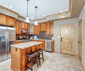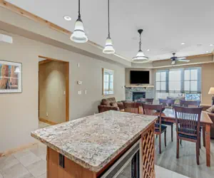 Condo is located in the Silver Mountain Condos building, one of the newest buildings in Bear Valley Village. There is a gated parking garage with one dedicated space as well as an elevator. This spacious condo offers all of the luxuries of home, complete with heated radiant heat in the floors. The propane fireplace offers dry stack slate with gas logs. The fully equipped kitchen offers Bosch stainless steel appliances, spices, toaster, coffee maker and a built-in wine rack. The master bedroom boasts a king sized bed and opens up to the bathroom with dual vanities, and a glass enclosed stall shower. The secondary bedroom offers a king sized bed as well as two twin sized rollaway beds. The hallway bathroom offers a large vanity and a jetted tub. All bathrooms are porcelain tiled with radiant heat. There is a queen sleeper sofa in the living room. There is Blu-ray, dvd/cd with surround sound, high speed DSL. This is one of the closest condos to all amenities in Bear Valley village. Just minutes to the Bear Valley Lodge where the bar/ restaurants, general store and sports shop is located. It is equal distance to the snowmobile and cross country centers where you can rent snowmobiles or rent snowshoes, sleds/tubes or cross country skis. Catch the free shuttle to the slopes at the shuttle stop across from the Bear Valley Lodge!