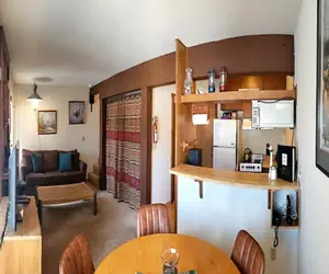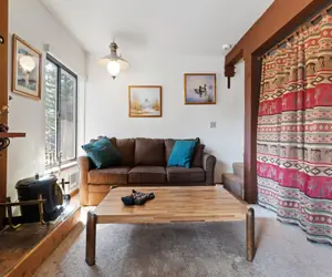 Very nice Tamarack condo just right for a family of four. This two bedroom condo has two levels. The upstairs offers the two bedrooms and one bathroom. One bedroom has a queen bed and the other has two twin beds, perfect for the kids. The vanity sink area is separate from the rest of the bathroom with a shower over tub. Downstairs there is a fully equipped galley kitchen and it even has a dishwasher. There is a dining table with seating for everyone and a comfortable couch that is also a sleeper sofa and just right for one person . Build a fire in the wood burning stove for extra heat and ambiance.